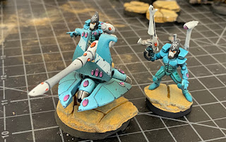 It has been many months, a 3000 mile move, and a lot of pandemic isolation, but I've finally started unpacking my miniatures and tip toeing into the hobby again. At this point I've unpacked hundreds of models, assembled the cabinets, and begun the long process of repairing what was damaged over many months in storage. So far things have arrive in pretty good shape. The most damage occurred due to the extreme heat here in Arizona and forgeword resin warping. Given our new desert environment, I had to grab some of my old bases and give them a try on these guys. I really like how this sets them off. Mymeara are traditionally on snow bases due to their fantastic artwork, but I think I'll stick with these. It was a nice way to dabble in the hobby while busy with home renovation.