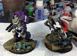 Neither of my entries are completed, but I am really happy with how this army is shaping up. I think it will be a really interesting force on the tabletop. The grayish stone and dead sons of horus marines complement purple really well. When I paint my living Sons of Horus, I'll make sure that the heroes have vibrant red cloaks and details. That should tie the armies together.