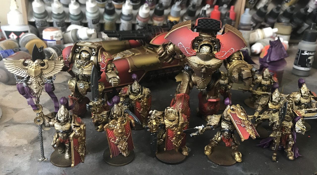 The army I planned for the NOVA Open is finally underway. A lot of thins prevented me from starting this force. However, after a day and a half of painting, I finally have a WIP worth showing. For a ludicrous reason, I painted the red first, and then started on the gold. Definitely not the right order!